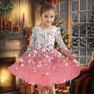 FILLE 3D Graphic Bande dessinée Robe Robe à Volants manche longue Eté Printemps Vacances du quotidien Princesse Magnifique Doux Enfants 4-12 ans Robe casual Robe Trapèze Mi-long Standard