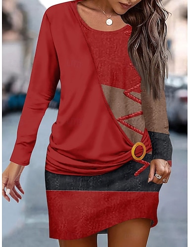 Femmes Mini Robe Robe T-Shirt Robe fourreau Occasionnel Quotidien Coupe régulière Graphique Géométrique manche longue Col ras du cou Jaune Rouge Bleu Roi Bleu Printemps Automne Hiver