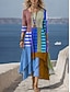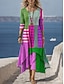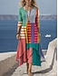 Femmes Robe maxi Robe fourreau Robe d'Été Vacances Occasionnel Plage Sortir Coupe Ample Graphique Géométrique Rayure manche longue Col en V Bleu Rouge Blanc Ecru Noir-Blanc Été Printemps