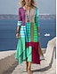 Robe maxi femme en lin comme robe décontractée quotidienne coupe ample graphique ombre manches longues col en V bleu jaune rouge violet été printemps
