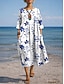 Femmes Robe Midi Robe Décontractée Robe Imprimée Mode Moderne Quotidien Plage Week-end Coupe régulière Fleuri Papillon Manche 3/4 Col ras du cou Bleu Blanche Rouge Kaki Été Printemps Automne