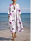 Femmes Robe maxi Robe trapèze Occasionnel Quotidien Date Sortir Coupe Ample Fleuri Graphique Manche 3/4 Col ras du cou Bleu Rouge Violet Vert Été Printemps