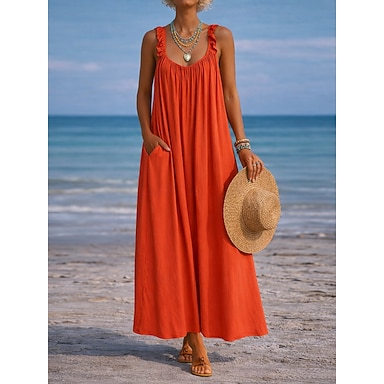 Femmes Robe maxi Faux coton lin Robe d'Été Robe Décontractée Robe Nuisette Mode Basique Moderne Quotidien Vacances Coupe Ample Uni Sans manches Col en U Bleu Noir Jaune Rouge Été Printemps Automne