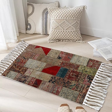Tapis vintage tissé à la main pour le salon et la chambre tapis patchwork pour la table basse doux antidérapant lavable en machine