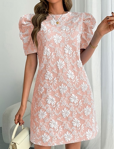 Femmes Mini Robe Robe Imprimée ancien Manches bouffantes Quotidien Extérieur Sortir Coupe régulière Fleuri Manche Courte Col ras du cou Bleu Blanche Rose Claire Été Printemps