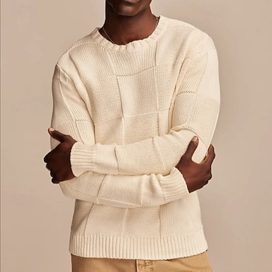 Homme Pull Côtelé Tricoter Hauts Réguliers Tricoté Coupe ajustée Uni Col ras du cou Tricots Contemporain Occasionnel Tenue quotidienne Vêtement Tenue Printemps Automne bleu marine Marron M L XL