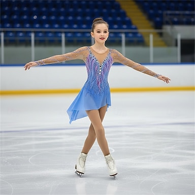 Robe de patinage artistique Fille Patinage Robe Bleu Ciel Patchwork Dos Nu Élastique Entraînement Compétition Tenue de Patinage Classique cristal pailleté manche longue Patinage sur glace Patinage