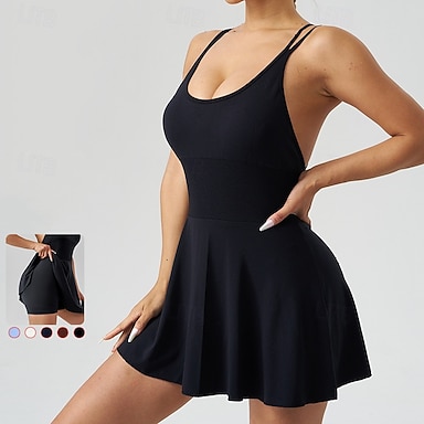 Femmes Couleur Unie Robe de tennis avec short et soutien-gorge intégrés tenue de sport Sans manches Dos nu Séchage Rapide Tennis Le golf Pickleball Col rond Noir Blanche Marron Vêtements de tennis