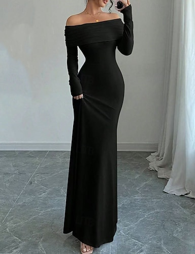 Femmes Robe Longue Maxi Robe Robe noire Robe fourreau Élégant Mode Moderne Quotidien Bureau Soirée Coupe régulière Uni manche longue Épaules Dénudées Noir Blanche Rose Claire Vin Printemps Automne