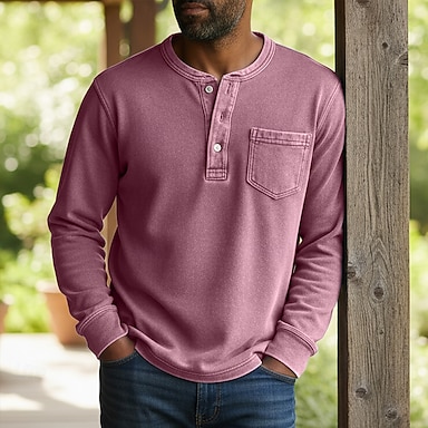 Homme Chemise Henley Chemise 100% coton délavée à l'acide T-shirt manche longue Vintage Couleur Pleine Rétro Vintage Occasionnel Le style rétro Teinture en vêtement Délavé Henley Occasionnel Automne