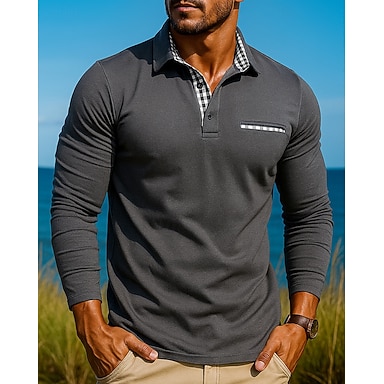 Homme Plaid Chemises Polo Gaufre Chemise de golf manche longue Polos Chemises à Col ancien Occasionnel Vêtements de vacances Tenue formelle Vêtements de festival Boutons Impression 3D Printemps