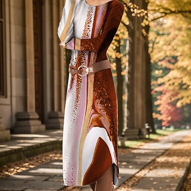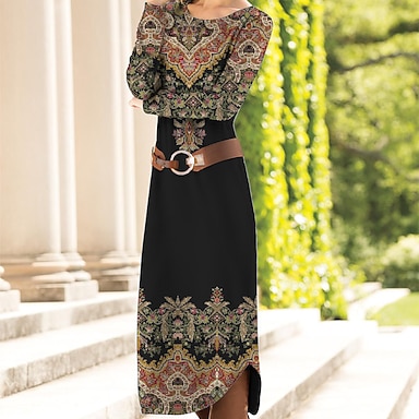 Femmes Robe Midi Robe fourreau Occasionnel Quotidien Coupe régulière Graphique Paisley Abstrait manche longue Col ras du cou Bleu Rouge Vert Printemps Automne Hiver
