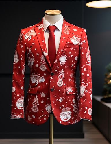 Blazer imprimé scène de Noël pour homme, manteau d'affaires, père Noël, arbre, blazer, chaud, respirant, confortable, vêtements de travail, pour sortir, bouton, imprimé, multi-poches, coupe