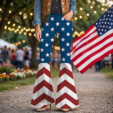 250e anniversaire des États-Unis Rétro Vintage Années 1970 Pantalon Pantalons à pattes d'éléphant Hippie Disco Taille haute Déguisement Femmes Mascarade 4 Juillet Soirée Jour de l'indépendance Adulte