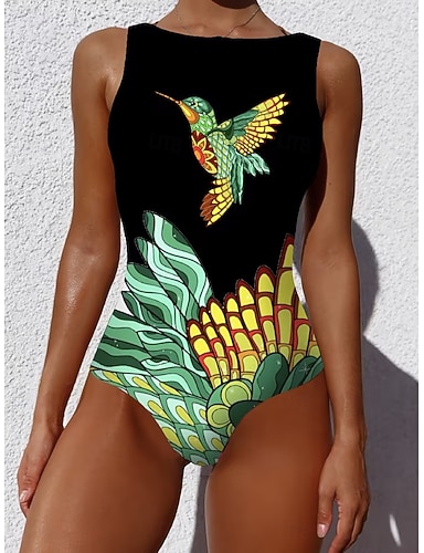 Femmes Maillots de Bain Une Pièce Monokini Slips Maillot de bain Contrôle du ventre Taille haute Mince Dos nu Vacances Tenues de plage Graphique Animal Col rond Sans manches Maillots de bain