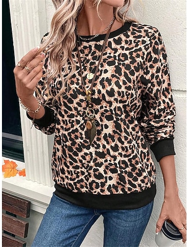 sweat-shirt femme imprimé léopard streetwear quotidien décontracté col rond manches longues micro-élastique automne hiver confort respirant tissu doux