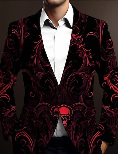 Homme Squelette Veste blazer Occasionnel Sombre Festival Impression 3D Printemps Automne Hiver Cranté manche longue Rouge Orange Vert