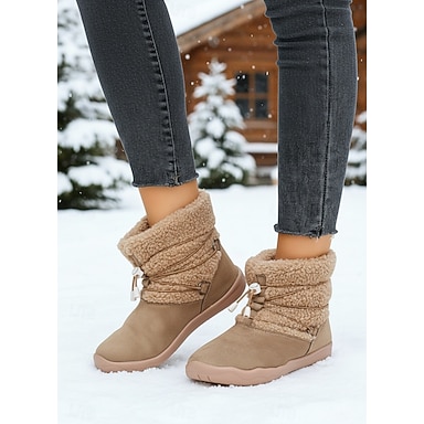 Bottes d'hiver kaki pour femme, coupe large, doublées polaire – bottines chaudes à cordon de serrage, idéales pour la neige, la marche, les activités de plein air et le quotidien.
