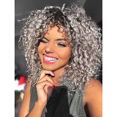 perruques afro bouclées pour femmes - perruque afro bouclée crépue avec frange perruques synthétiques cosplay