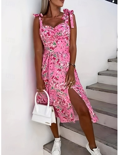 Femmes Robe Midi Robe Décontractée Robe Fleurie Robe Nuisette Élégant Mode Moderne Extérieur Vacances Sortir Coupe régulière Fleuri Sans manches Col en V Rose Claire Été Printemps