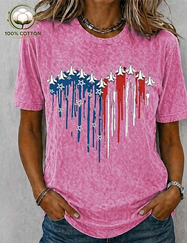 Jour de l'Indépendance américaine t-shirt femme 100% coton impression graphique drapeau abstrait stylé basique classique à manches courtes col rond hauts réguliers décontractés quotidien bleu rose