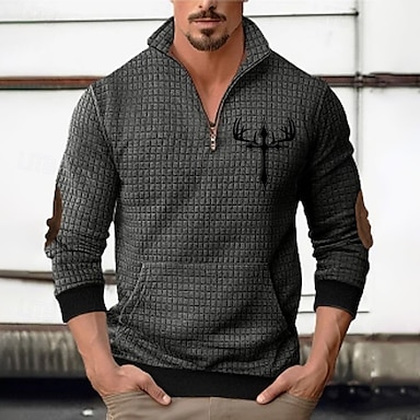 Homme Sweat-shirt Sweat-shirt gaufré Sweat-shirt quart de fermeture éclair Noir Gris foncé Demi-zip Graphique Imprimé Patchwork Poche Avant Quart de zip Quotidien Fête Sortir Polyester Streetwear