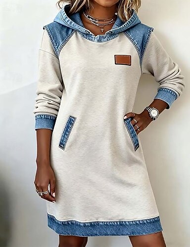 Femmes Mini Robe Robe à Capuche Robe Décontractée Mode Moderne Quotidien Extérieur Vacances Coupe régulière Uni manche longue À capuche Noir Blanche Jaune Vert Automne Hiver