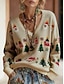 Femmes Pull de Noël Pull Fair Isle Cardigan Mode Quotidien Occasionnel Graphique Côtelé Col ras du cou Boutons Imprimé manche longue Hauts Réguliers Tricoter Noël Extérieur Quotidien Beige Automne