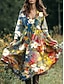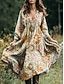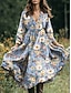 Femmes Robe Midi Robe trapèze Vacances Occasionnel Quotidien Plage Coupe Ample Fleuri Graphique manche longue Col en V Bleu Rouge Orange Été Printemps