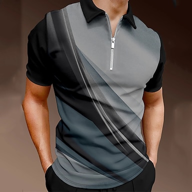 Homme Graphique Polo à fermeture éclair Manche Courte Col Rabattu Moderne Décontracté / Sportif Sport & Loisir Athleisure Décontracté Quotidien Impression 3D Été Noir / Blanc