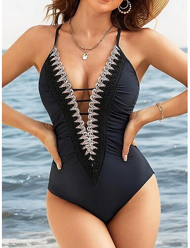 Maillot de bain une pièce femme amincissant colorblock monokini sans dos contrôle du ventre taille haute slim vacances vintage pois forme en U sans manches