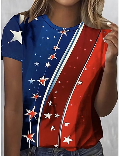 Jour de l'Indépendance Américaine Femmes T-shirt Imprimé Graphique Drapeau Élégant Classique Occasionnel Manche Courte Col ras du cou Col rond Hauts Réguliers Quotidien Bleu Rouge Rouge / Bleu Ét