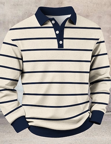 Homme Rayures horizontales Chemises Polo Gaufre Polo de rugby manche longue Polos Chemises à Col Occasionnel Sports Tenue quotidienne Boutons Printemps Automne Hiver Bleu Noir Marron