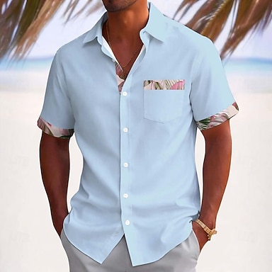 Homme Feuille de palmier Plantes Tropicales Chemise Chemises hawaïennes Chemise Aloha Manche Courte Hawaïen Vacances Fête Été Col Rabattu Impression 3D Une poche avant Chemise en lin Bleu Bleu ciel