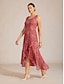 Sirène Trompette Longueur cheville Mi-long Robe de Soirée Robe de Cocktail Robe d'invité de mariage Robe de Mère de Mariée Manche Courte Épaules Dénudées Élégant Formel Soirée Formelle Fête de