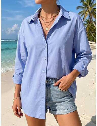 Woman's 100% coton blouse faux lin froncé boutons couleur unie stylé basique décontracté à manches longues col chemise hauts réguliers quotidien bleu noir blanc rose beige printemps automne hiver