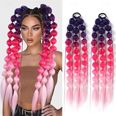 Lot de 2 extensions de queue de cheval à bulles synthétiques colorées, 61 cm (24 pouces), tresses légères, accessoires de festival et de rave pour une coiffure extravagante.