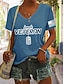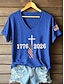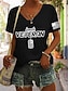 Jour de l'Indépendance Américaine Femmes T-shirt Imprimé Graphique Lettre Drapeau Américain Élégant Classique Occasionnel Manche Courte Col en V Hauts Réguliers Occasionnel Quotidien Bleu Noir