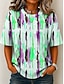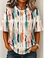 Femmes Chemisier Imprimé Fleuri Graphique ancien Élégant Occasionnel Manche 3/4 Manche cloche Col en V Hauts Réguliers Quotidien Fête Sortir Bleu Rose Claire Rouge Marron Été Printemps Automne