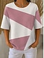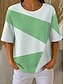 Femmes Tee-shirt Gaufre Tops tricotés texturés T-shirt Hauts d'été Épaule tombante Imprimé Graphique Géométrique ancien Élégant Classique Manche Courte Demi Manches Col ras du cou Col rond Hauts