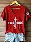 Jour de l'Indépendance Américaine Femmes T-shirt Imprimé Graphique Lettre Drapeau Américain Élégant Occasionnel Manche Courte Col en V Hauts Réguliers Occasionnel Quotidien Bleu Noir Rouge Vert Ét