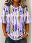 Femmes Chemisier Imprimé Fleuri Ethnique Rétro Vintage Manche 3/4 Col ras du cou Hauts Réguliers Quotidien Fête Bleu Violet Marron Été Printemps Automne