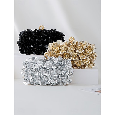 Pochette de soirée à fleurs et sequins pour femme, sac à main fleuri en polyester avec bandoulière chaîne, disponible en plusieurs couleurs, idéal pour les mariages, les banquets, les événements