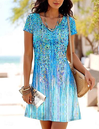 Femmes Mini Robe Robe fourreau Robe T-Shirt Robe d'été Occasionnel Quotidien Fête Date Coupe régulière Graphique Tribal Ethnique Manche Courte Col ras du cou Bleu Rouge Violet Vert Été Printemps
