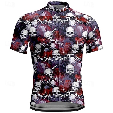 Homme Maillot de cyclisme Crâne Manche Courte Cyclisme T-shirt Maillot Top avec 3 poches arrière VTT Vélo tout terrain Séchage Rapide Respirant Des sports Rouge Vêtement Tenue