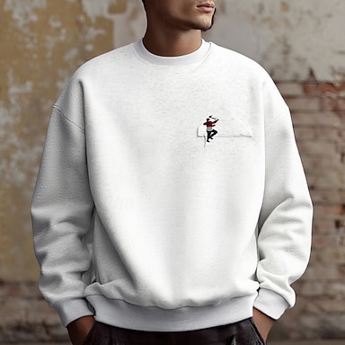 Homme Sweat-shirt Blanche Gris Col ras du cou Uni Sport & Loisir Quotidien Fête Polyester Streetwear Basique Occasionnel Printemps Automne Vêtement Tenue Pulls Capuche Pulls molletonnés
