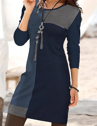 Femmes Mini Robe Robe T-Shirt Occasionnel Quotidien Coupe régulière Géométrique manche longue Col ras du cou Noir Bleu Violet Gris Printemps Automne
