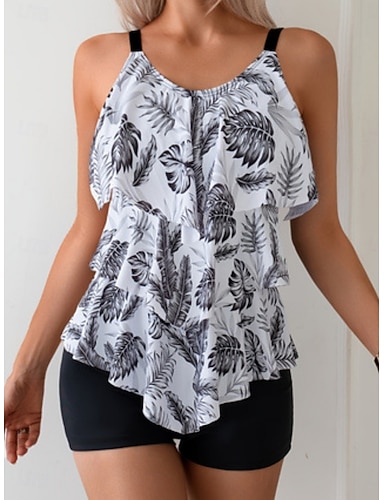 Femmes Maillots de Bain Tankini 2 pièces Taille haute Maillot de bain Contrôle du ventre Taille haute Mince Dos nu Élégant Vacances Feuilles Décolleté Sans manches Maillots de bain