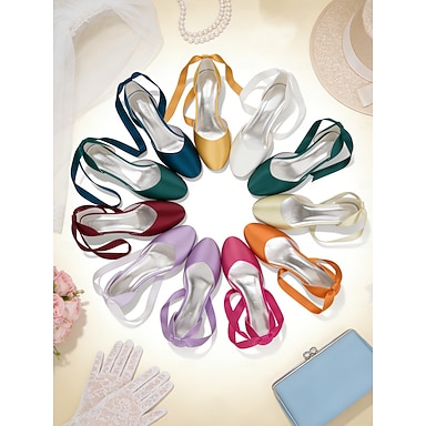 Ballerines multicolores en satin à lacets cheville pour femmes, élégantes chaussures de demoiselle d'honneur à bout pointu pour les mariages en extérieur sur la pelouse