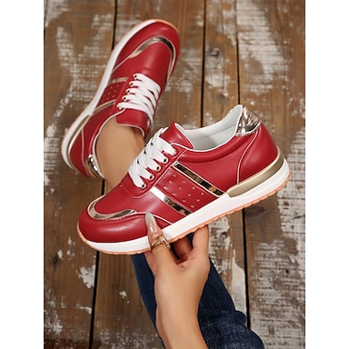 Baskets décontractées tendance à accent métallique pour femmes - baskets à lacets élégantes en blanc, bleu et rouge